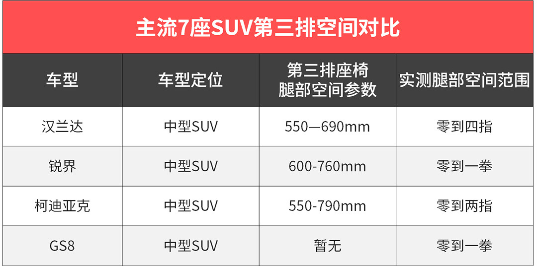 导致第三排无论是空间还是舒适度表现并不佳