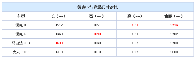 3、虽然命名为领克02但是在车身尺寸却比领克01小;