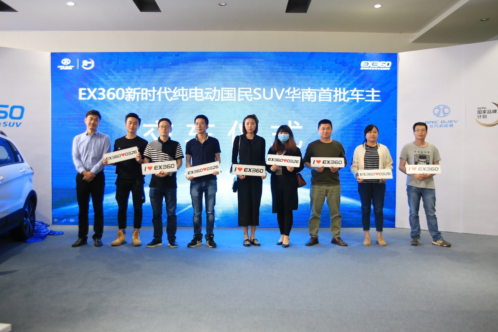 关于EX360的预售情况,北汽新能源华南事业部总经理曹军介绍:“EX360自2月26日预售以来十分火爆,预售1个月内,全国私人用户订单已近6000,这应该是创造了国内纯电动汽车对私预售的纪录。华南区发布会现场,邀请到了首批8名EX360的私人用户进行了交车仪式,希望EX360能够像家人一样,见证、陪伴车主朋友们生活、工作的每个精彩时刻。