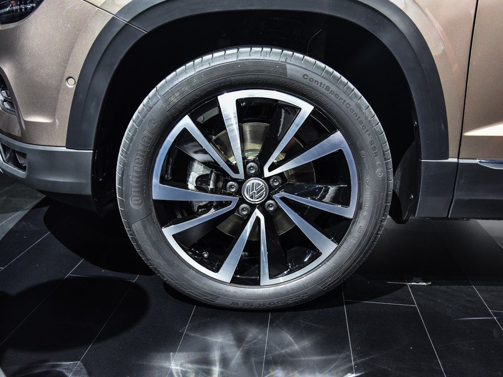 18英寸多辐轮圈的样式挺好看,匹配马牌CSC5 SSR轮胎,轮胎尺寸为225/50 R18,这一点相比已经上市的顶配版柯珞克轮胎更宽一些。