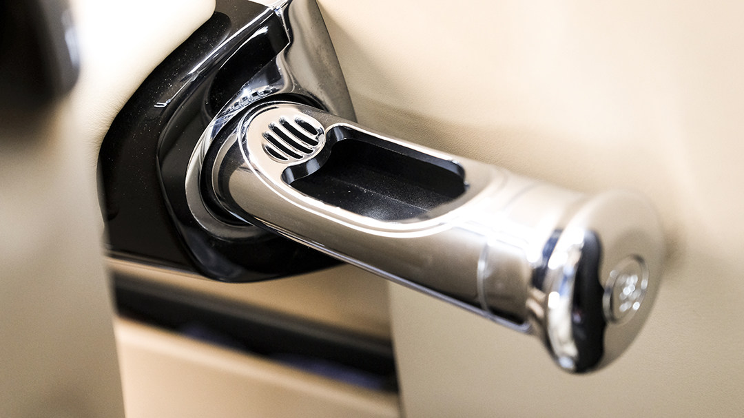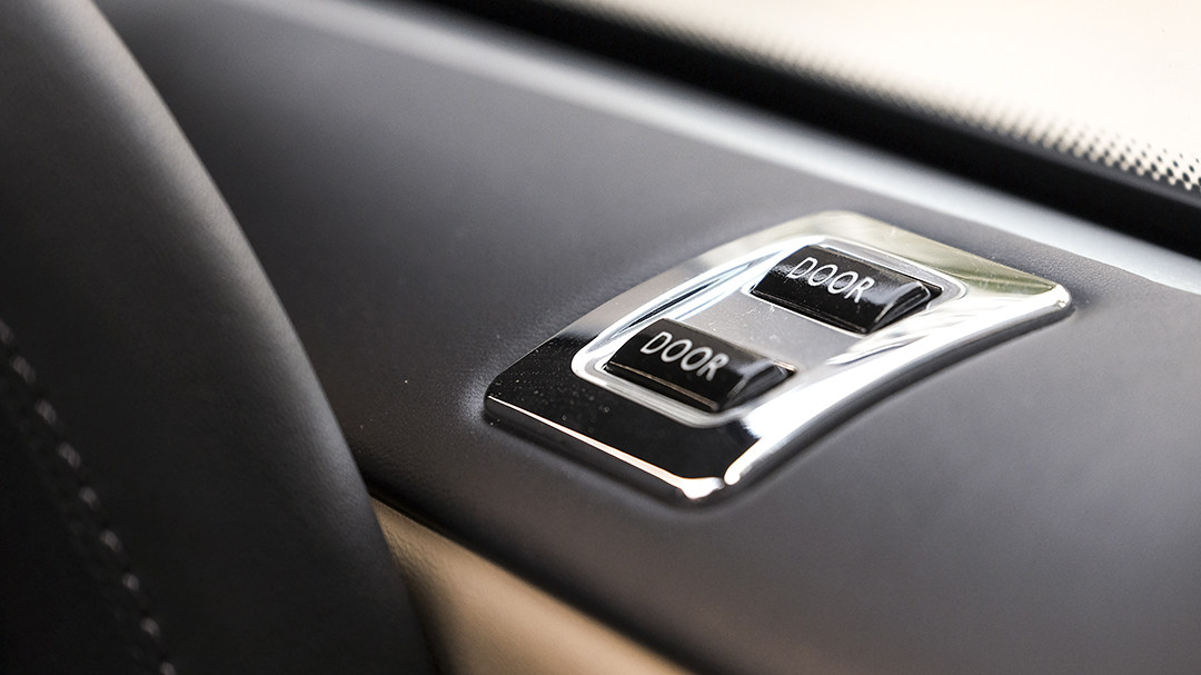 上车后,还要伸长手臂甚至探出身子去拉那扇巨大的车门实在是太不优雅了,于是劳斯莱斯给幻影Drophead Coupe装上了这个关门专用按钮,就放在A柱三角窗下方。