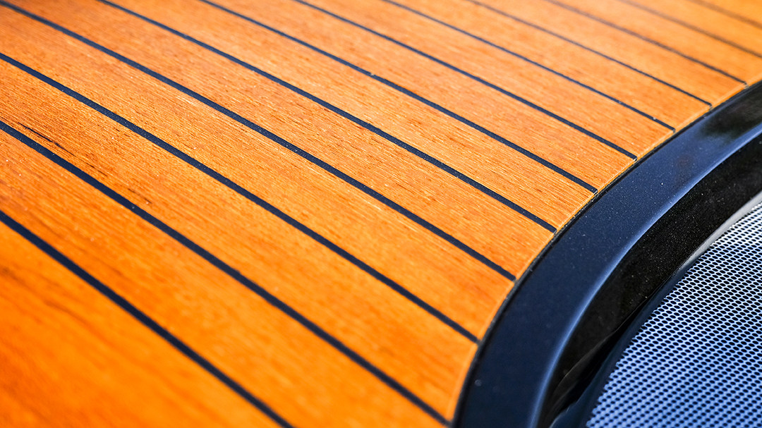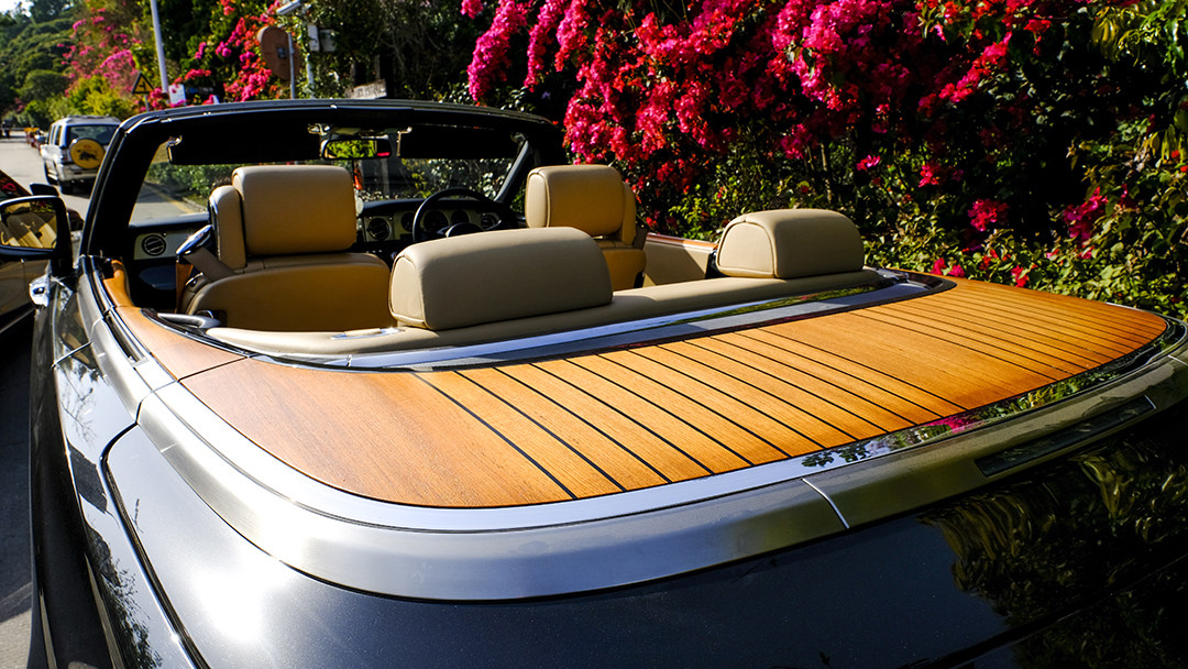软顶收纳后,大面积的实木饰板让整个车厢变得更像游艇了。