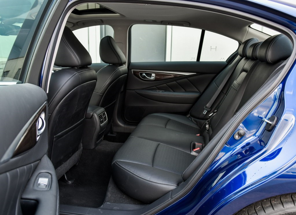 内饰采用环抱式设计,功能分区明确,规规矩矩,一切都看起来都那么简约平淡;虽然轴距达到了2935mm,但是后排腿部空间却不如轴距2900mm的TLX-L,而且坐垫比较薄,质地比较硬、扶手位置偏低,舒适性相比前两位差距明显。