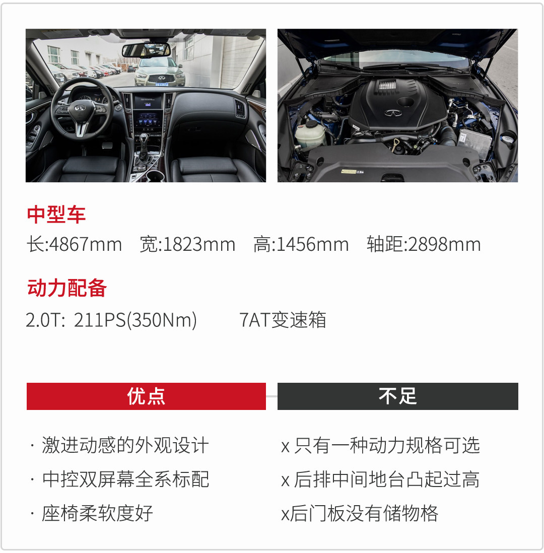 中期改款后的Q50L变化不大,只在外观细节上稍作调整,比如尾灯光源造型更飘逸,运动版的前包围增加了个下扰流板,整体相比老款运动感稍有提升。