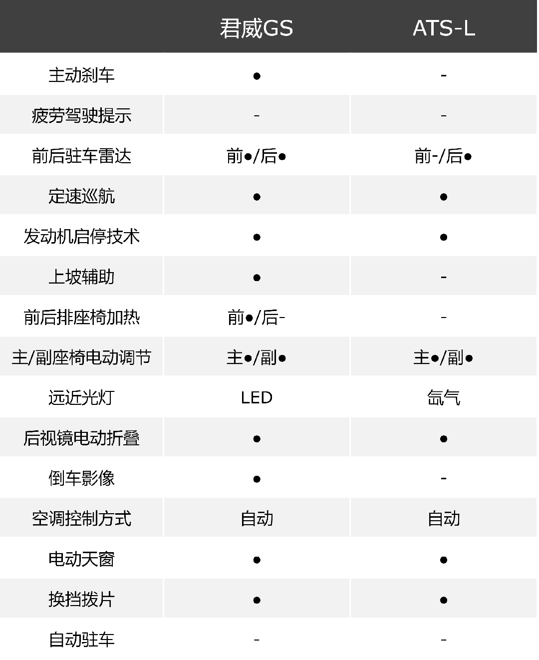 综上所述,君威GS无论是在外观、空间亦或是价格、配置上都要胜于ATS-L一筹。当然,ATS-L的强悍性能、驾控乐趣以及品牌溢价力亦非君威GS可比肩。