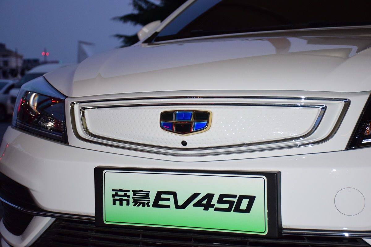 帝豪EV450外观车身与帝豪一脉相承。与前作帝豪EV300相比,最大的不同就是采用全封闭式前脸隔栅。由于纯电动车无需给内燃机进气和散热,所以可以采用全封闭式前脸隔栅。这是新时代纯电动车的显著特征。