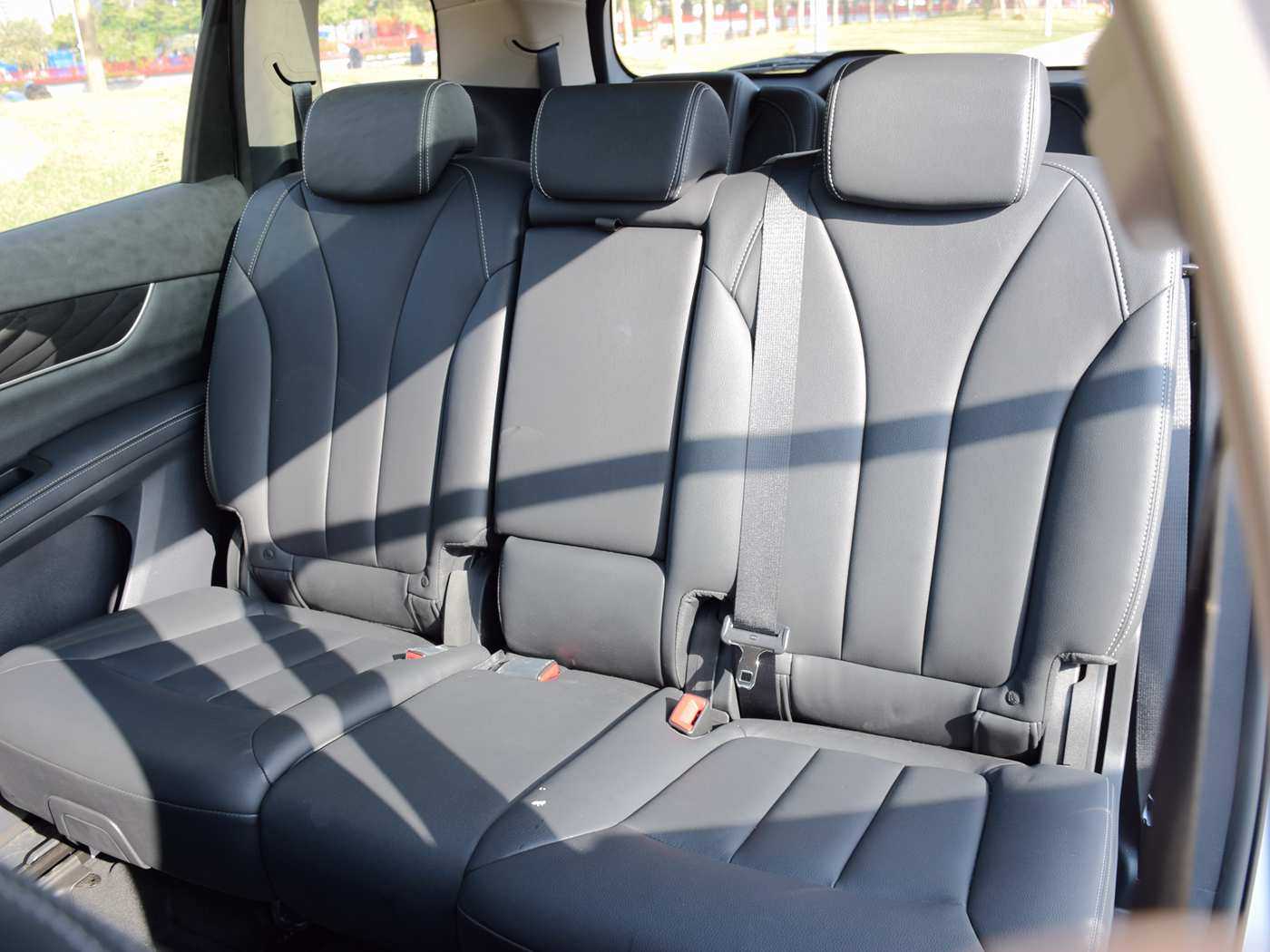 整车使用2+3+2的布局和一般的MPV有所不同,但好处也很明显,就是在5人出行的情况下可以不用启用第三排,这样还能拥有不错的后备箱空间,并且儿童座椅接口位于第二排方便看管照顾。前两排座椅都够大,坐垫和靠背也都够长,包裹的真皮材质细腻,座椅的填充也很柔软,坐起来很舒服,而且还可以支持前后滑动。第三排座椅比较薄,头部空间稍显居促。