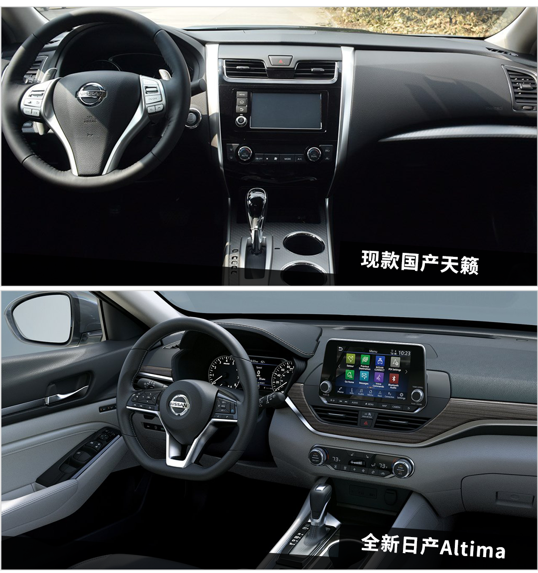 外观上变化不少的全新一代日产Altima,在内饰上也很好地相呼应了。我们可以在全新的内饰中看到不少潮流的元素,如悬浮式中控屏、更能彰显运动气息的平底三幅式方向盘、质感不错的木纹面板装饰等。内饰整体展现出一种简约、时尚的氛围,进步是蛮大的。