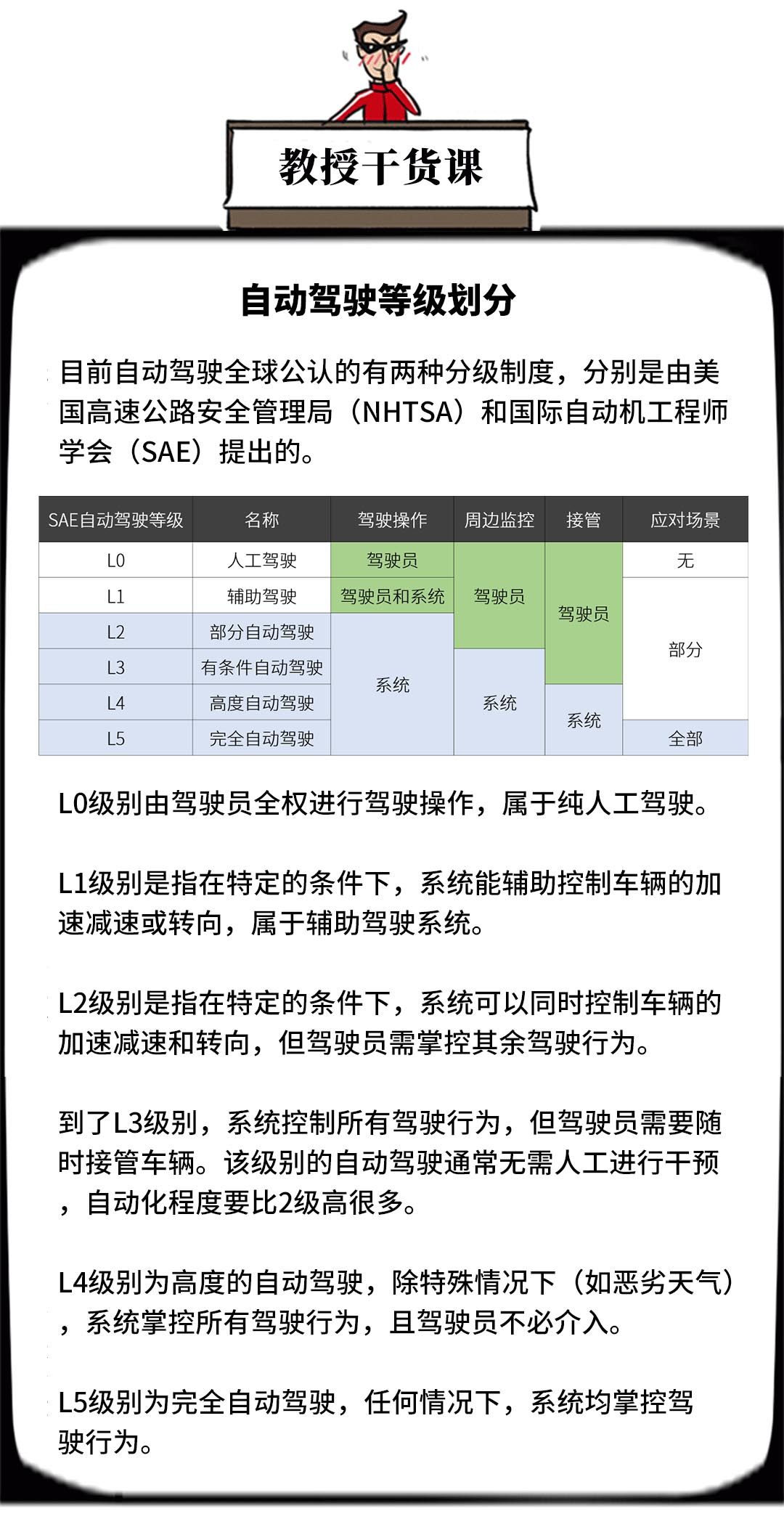 对于自动驾驶很多人存在一些误解,认为自动驾驶就是无人驾驶,其实自动驾驶有多个等级的划分,最主要的区别在于人的参与度。低级别的自动驾驶更多是起到驾驶辅助的作用,仍然需要人的决策和操作,而高级别的自动驾驶是基本不需要人类做任何驾驶决策的,达到完全自动化的程度才是真正意义上的无人驾驶。