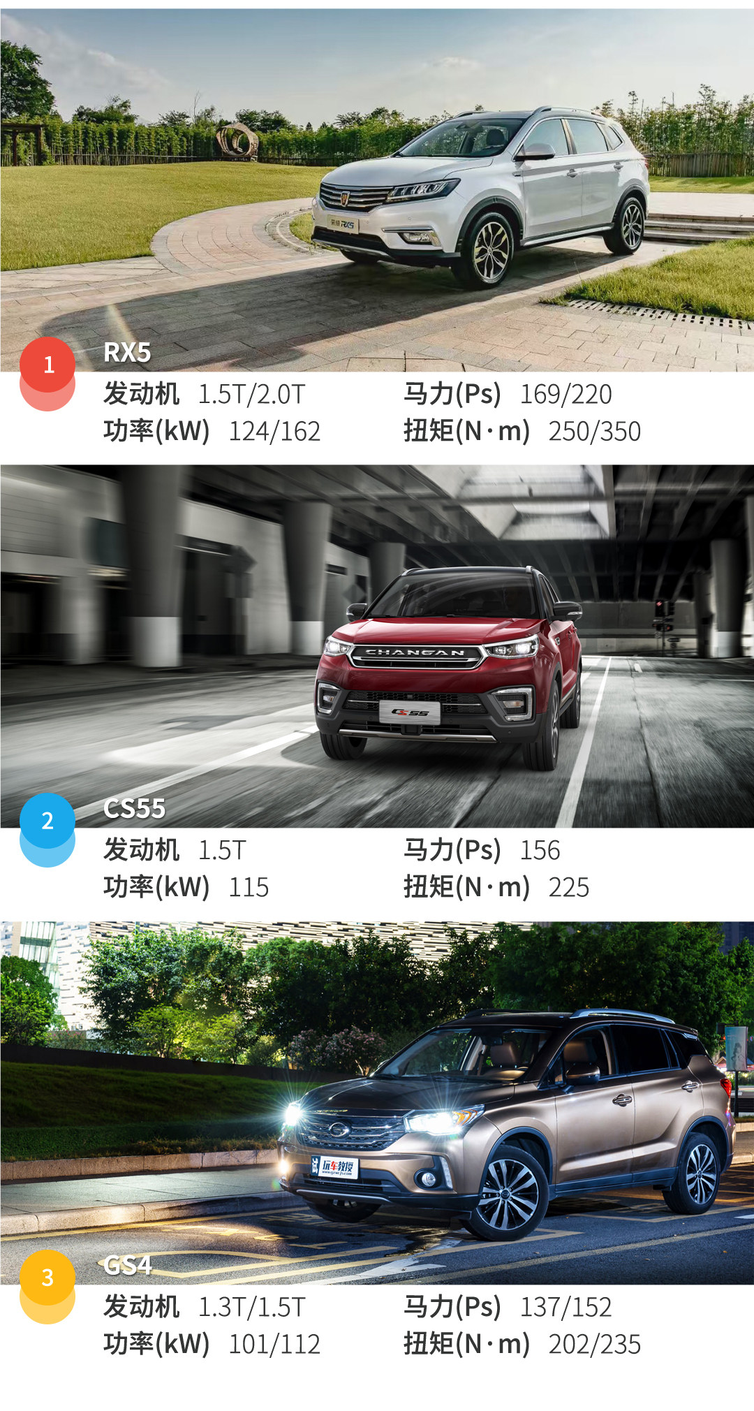 三款车在市场的表现都不差,而且都有着不错的产品力和性价比:RX5外观精致内敛,而且驾乘都有不错的舒适性;CS55配置高,空间表现不错,还有一副运动感不错的底盘;GS4是三者之间最中规中矩的车型。
