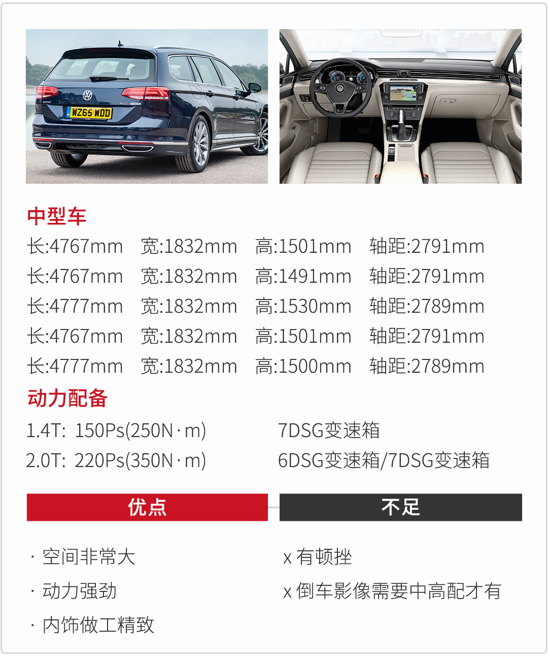 虽然比迈腾小,但是并不用担心空间,它只是没有那么无敌而已,身高4375px左右的体验者坐在后排的腿部空间差不多三拳,前二郎腿没问题;后备厢常规容积为650升,第二排座椅支持4/2/4比例放倒,放倒后容易可扩充至1780升,而且非常平整,所以无论是乘坐空间还是载物性能都是相当强的。