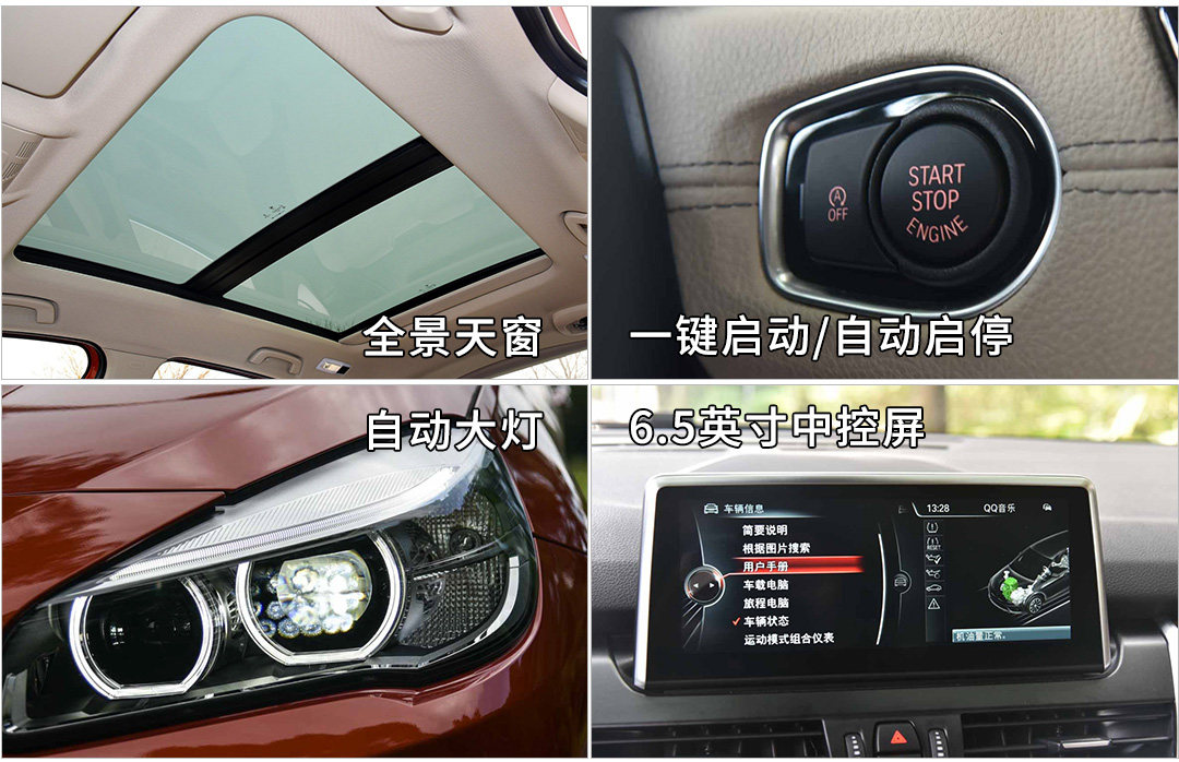 作为一款旅行车,2系的配置相当到位,标配8个气囊、胎压监测、ESP,安全配置很足,标配全景天窗,很符合旅行车的定位,还有自动启停、后驻车雷达、车顶行李架、中控屏、自动大灯、自动雨刷这些都能满足出游的基本需求,有点不足是USB插口只有前排一个,后排没有;而且座椅加热、电动后备厢和倒车影像这些提高舒适性的配置在低配只能选装。