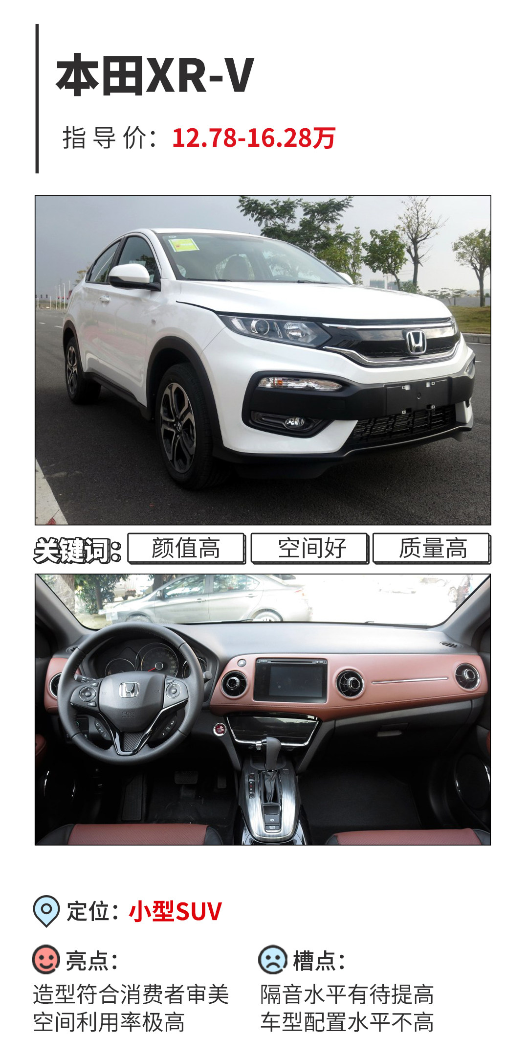 当然,本田作为一个买发动机送车壳的品牌,XR-V在机械功底方面确实不用我们过于担心,毕竟技术宅的称号并不是浪得虚名,在保证动力强劲的同时也有着表现极佳的油耗水准。