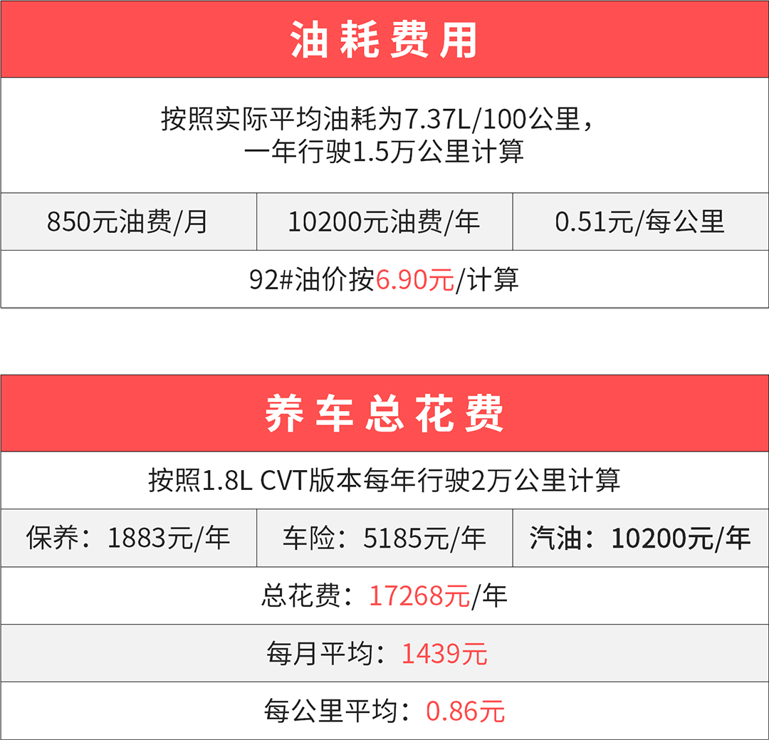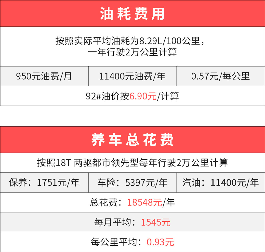 说到最后,通过数据表你可以看出,其实一辆车最基本的用车费用主要在于油费上,而这也取决于你每年的行驶里程,而上述仅仅是最基本的支出,除此以外你还必须考虑到你的用车环境,假如在一线大城市生活,或许你也应该好好去考虑一下“停车费”的问题,就以广州中心地区而言,动不动就是10多块一小时、几十块一天、几百块的月保,也是可以直接决定着你的费用支出。