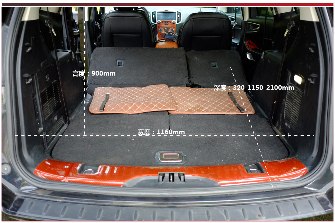 由于较大的车身尺寸,行李箱的宽度和高度都超过一米。在放倒第三排座椅的情况下,行李箱进深有1150mm,容积有2039L,非常巨大。不过由于整台车的座椅尺寸都很大,又要保持乘坐空间,因此当使用第三排的时候,行李厢空间被压缩得只剩下233升,行李厢深度只有320mm,非常窄小,实用性不大。