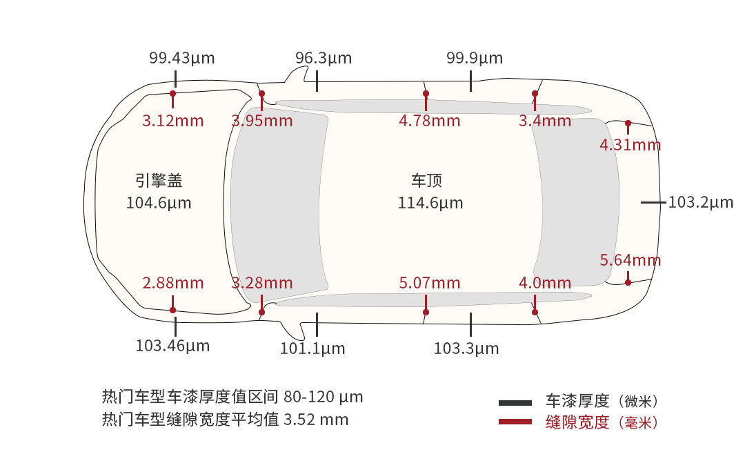 锐界的的外观工艺和同级别的车型相比,表现只能算是中游。钣金缝隙平均4毫米有点超出普遍的水准,而车漆平均厚度也只有102微米,还是需要有一定提升的空间。