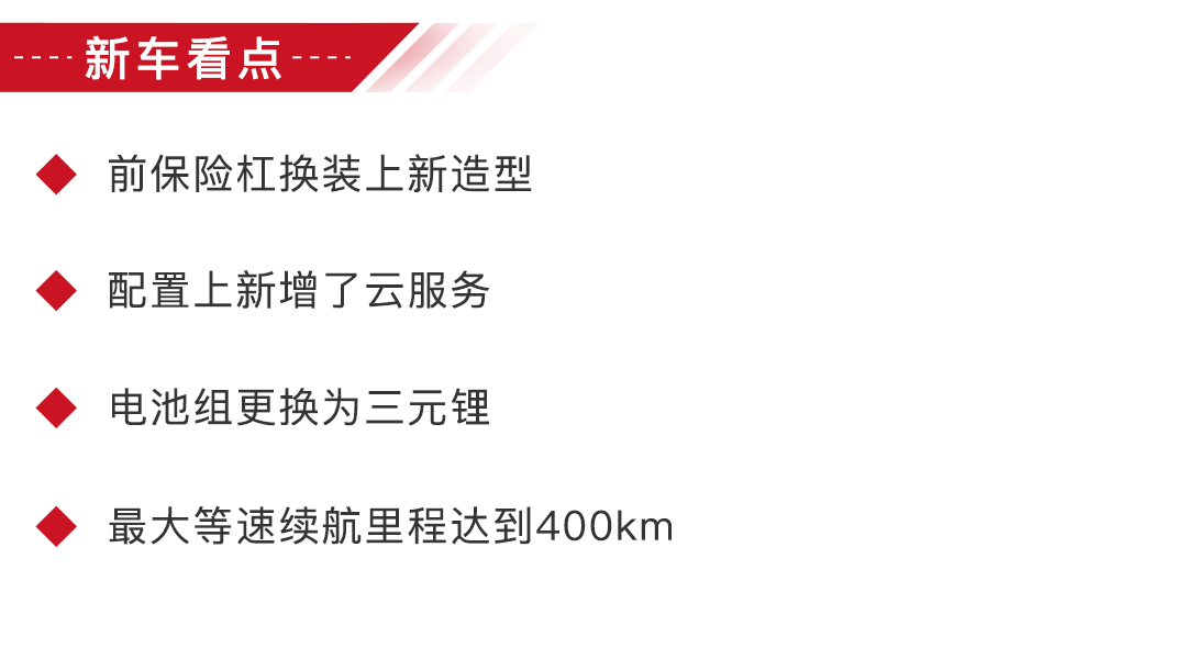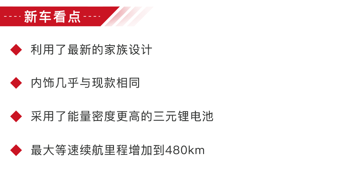 秦EV450应该是今天新上市的3款车型中,外观变化最大的车型了。它的中网造型变得更加时尚、年轻了;动力方面,沿用了现款的动力总成,但是换装上了三元锂电池组,更大的能力密度,进一步提升了续航里程。其中,NEDC综合工况续航里程为400公里,60km/h等速状态续航里程为480公里。