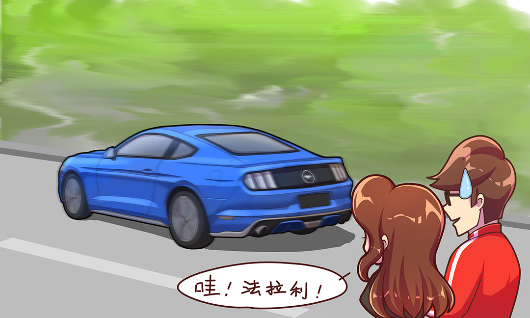小美的目光追随着飞驰的蓝色小汽车远去,惊呼:“看啊!法拉利!好帅,我也想坐法拉利...”