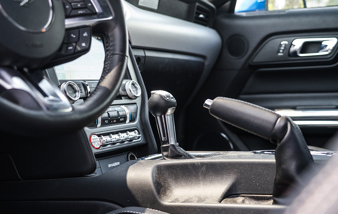 而当进到车内,Mustang的装逼功力就有所打折扣了,中控控制区的按钮散发着强烈的金属和机械质感,只是用起来并不是那么回事。