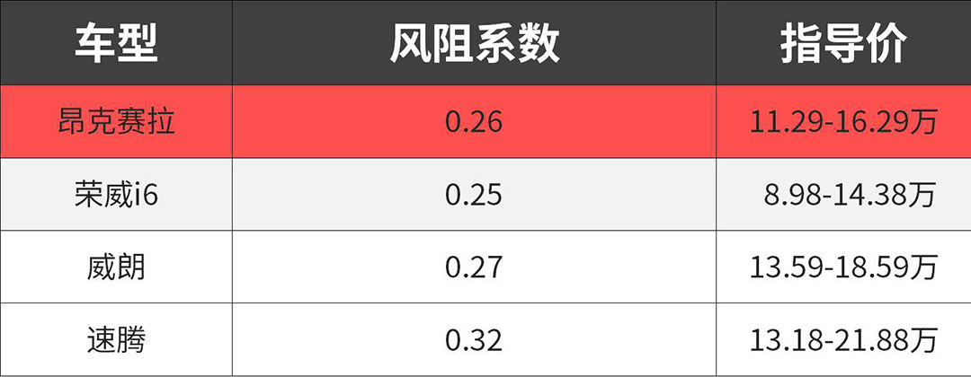 风阻系数:0.26(三厢)