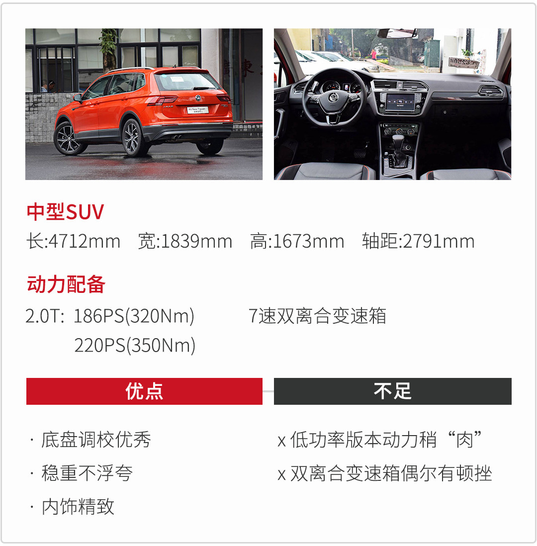 途观L的出世让很多车企都招架不住,采用了最新的家族设计,比途观更有气势、硬派。不要以为这样就会把车调校得也倾向于硬派、很难驾驶,事实上途观L一如既往延续了大众车型的风格,中控台的规整设计,不错的做工、材质应用,也很难让人发出太多抱怨,一切都以实用为主。空间大、配置丰富、悬架舒适、动力应对日常使用也绰绰有余,虽然低速时的动态表现还有提升的空间,但也无伤大雅,综合表现相当不错。