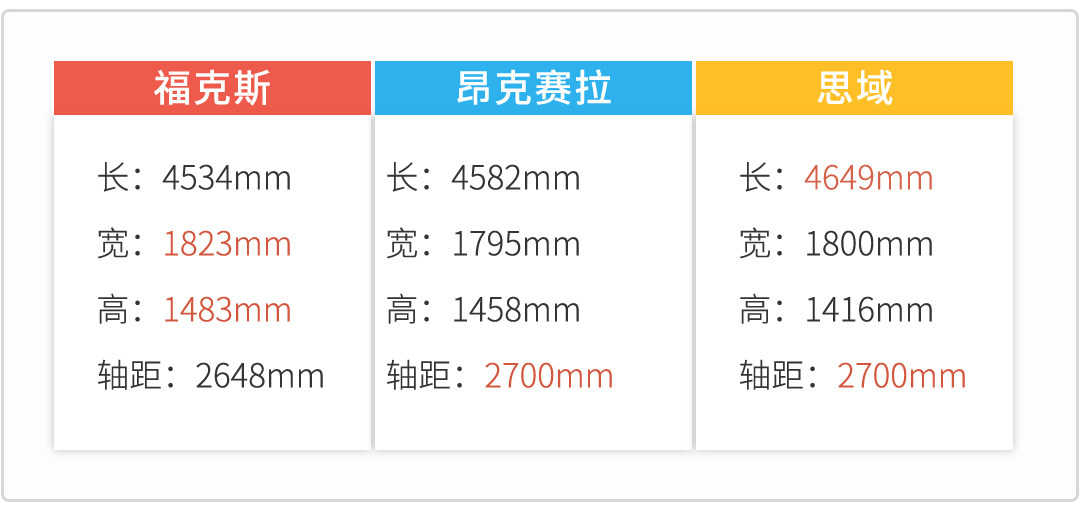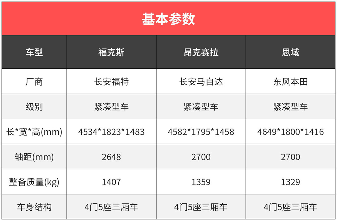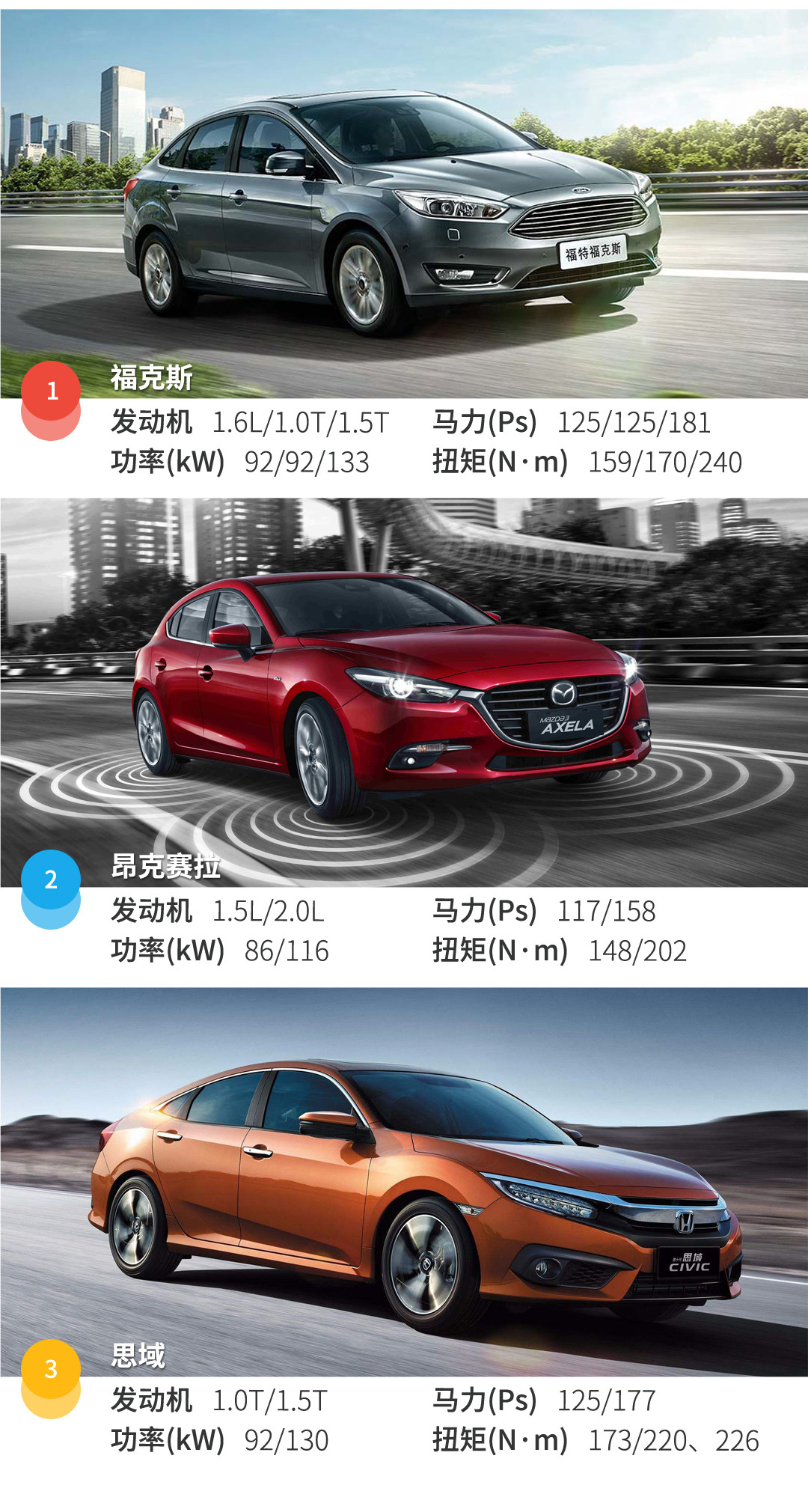 福克斯和思域各有两项占优,昂克赛拉表现处于其他两者之间。