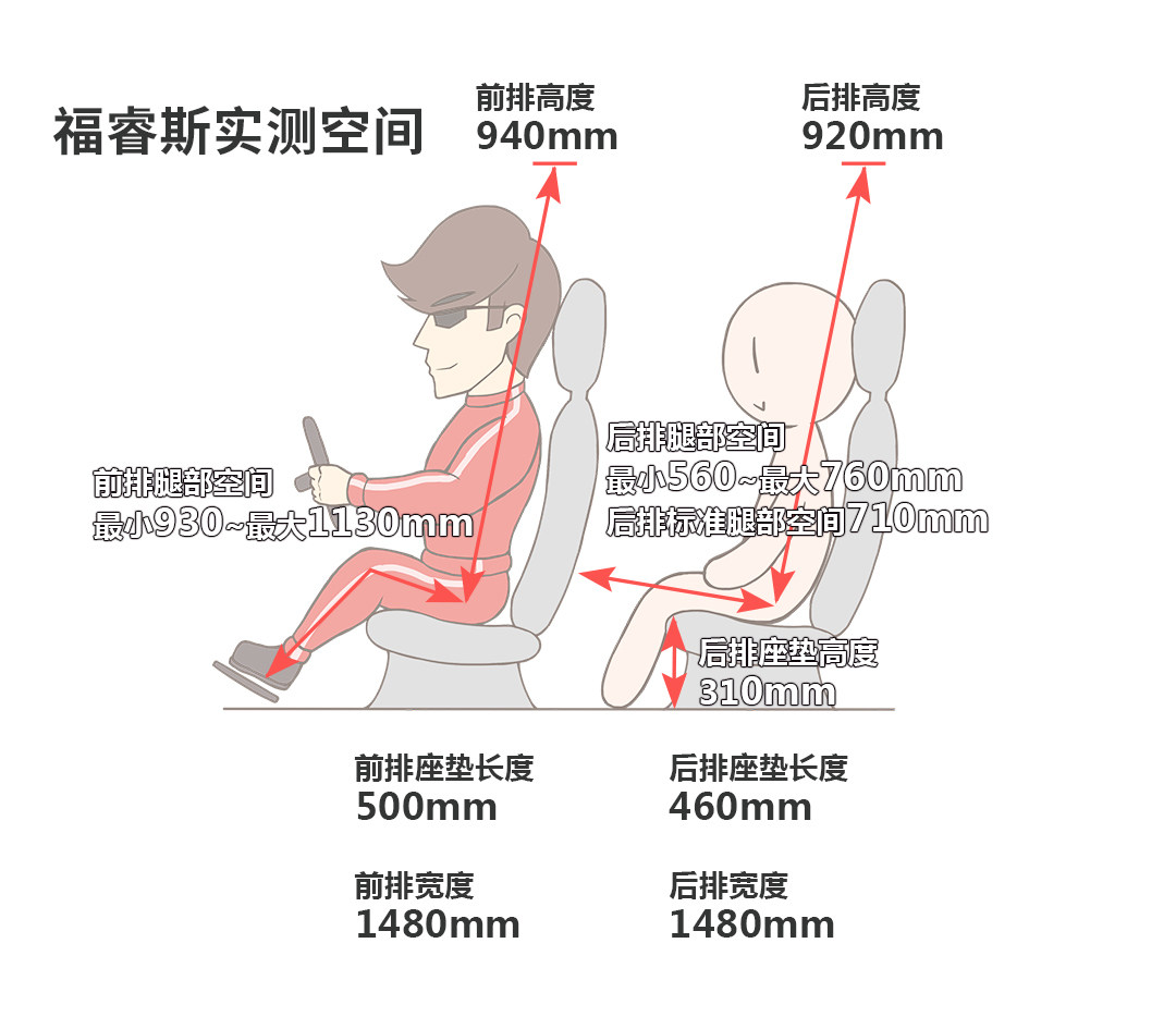 在尺寸上福睿斯拥有绝对的优势,而在实际体验中,以身高为175cm的体验者为例,福睿斯的前排头部空间为一拳两指,后排头部空间为三指,腿部空间为两拳。