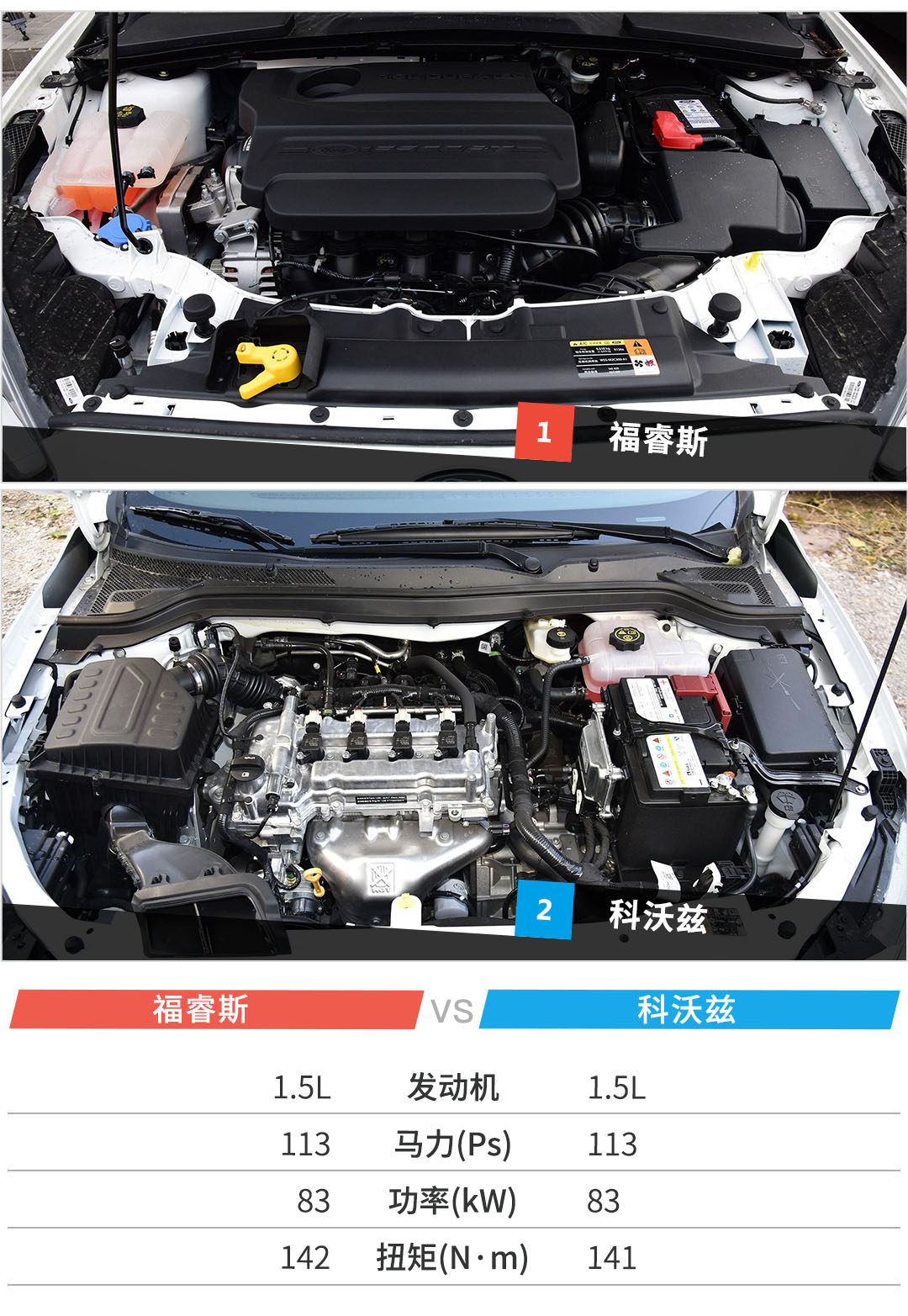 在动力方面,这次对比的两车都是采用1.5L自吸发动机和6速手自一体变速器的配合,两车的油门调校都比较灵敏,区别在于科沃兹的换挡速度更迅速一些,并且升降挡逻辑要优于福睿斯,但是这样一来整车隔音与福睿斯相比则略逊一筹,在转向手感上,两车都是低速轻盈高速沉稳,在悬挂上两车都是采用前麦弗逊后扭力梁的组合,福睿斯的调校比较有韧性,面对大部分颠簸都能很好过滤。而科沃兹则是保留了比较多的路感,传到车内的细碎振动会比较多。