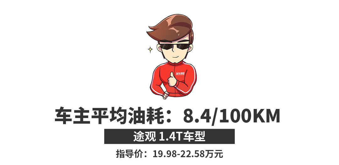 途观1.4T并没有因为排量的优势和两位对手在油耗方面拉开太多差距,表现都差不多。