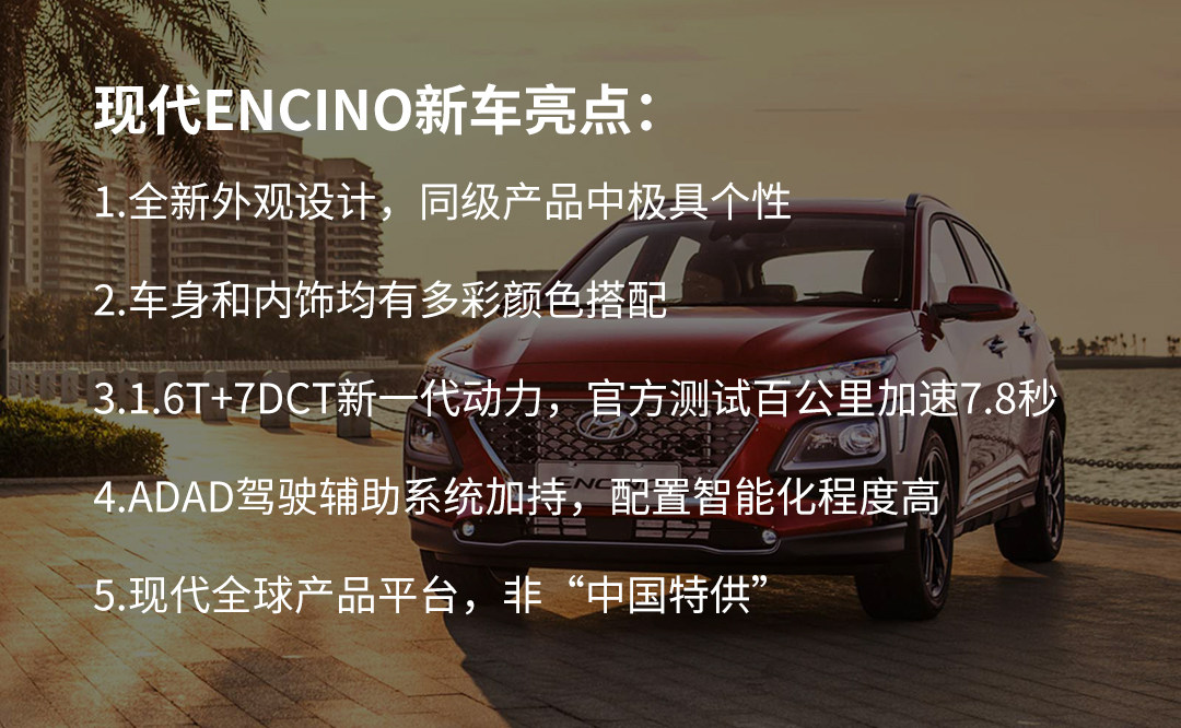 “颜值”这个词伴随了现代很长一段时间,但到了2015年九代索纳塔上市的时候,好像突然卡壳了。到了ENCINO的问世开始找回了感觉。有了这样一张脸才会有深入了解它的冲动,ENCINO的出现足矣在小型SUV的市场中投下一颗巨石,哦,我差点忘了,官方测试中,它的1.6T可以达到7.8秒破百,也就比思域慢个0.5秒吧。说它是SUV圈的“小钢炮”也不过分。ENCINO在西班牙语里有绿色长青之意,传达了“自由”、“向上”情感诉求;而这些似乎都正是北京现代ENCINO想要为大家所展示的元素。作为现代2018在华的领跑之作,它的竞品着实不少——缤智、XR-V,乃至Jeep的自由侠都是其最直接的对手,但ENCINO还是有很多独到的优势。如果其能够在大众T-Roc,丰田C-HR上市前获得一定的市场地位,对现代来说就是最好的结果。