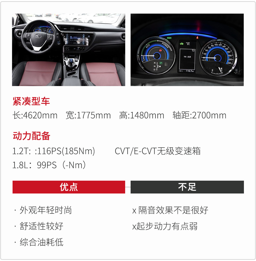在我们普遍的认知当中,日系车都是比较省油的,在空间和舒适感上面的表现也是比较能满足国人的需求,而在后期的维修保养费用方面,日系车也是比较低的。唯一美中不足的点就是车身轻脸皮薄,开快了容易飘,感觉安全系数不高,其实不是的,这样做的目的不过是为减轻车重,降低燃油消耗。说到省油的日系车,当然少不了日系三小杰中的卡罗拉。