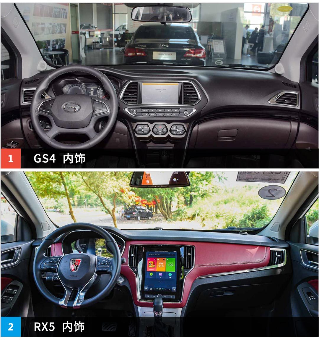内饰方面,荣威RX5的大尺寸屏似乎更吸引人一点,但是传祺GS4的实体按键也是设计得很有味道,在高速行驶时,为司机的盲操带来一定的便利性,嗯,这方面似乎是各有千秋,看朋友更喜欢哪个。