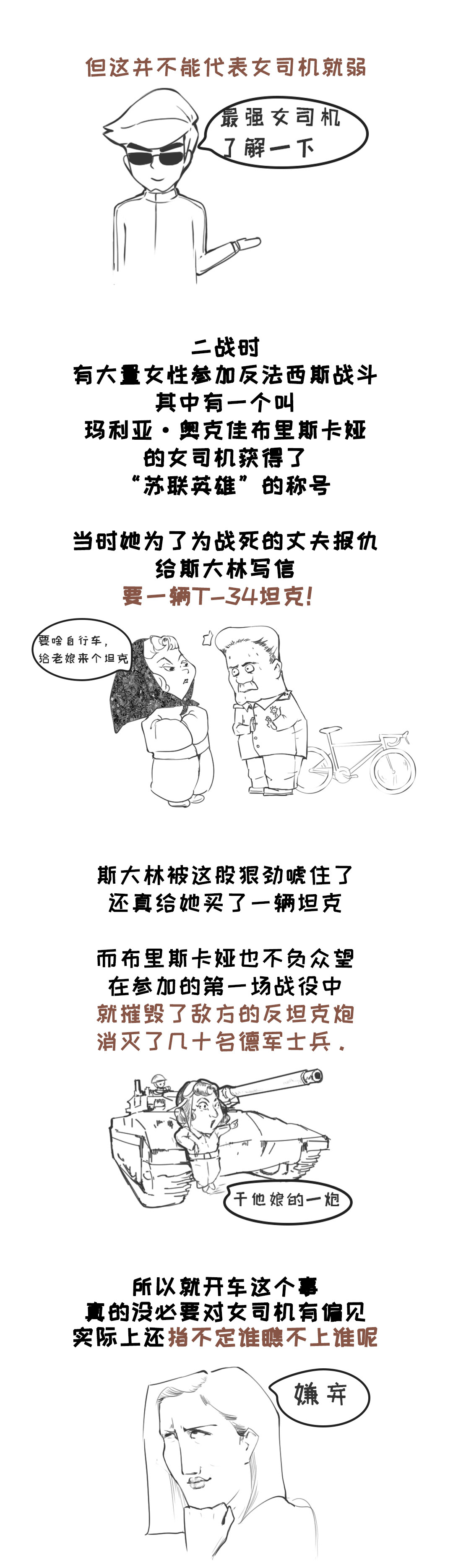 如果都像女司机一样龟速开车,这路一定是没法走了!驾驶是一种乐趣,要有一定速度来保证的。