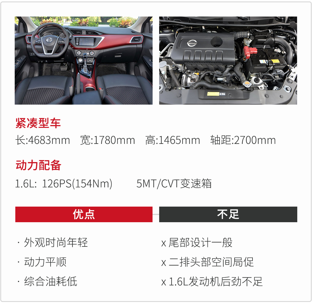实际上,蓝鸟只是看起来运动而已。1.6L+CVT的动力总成注定不会运动到哪里去,CVT变速箱尽管保证了动力输出的平顺性,但是无法一步到位的降挡,还是影响了它的驾驶乐趣。