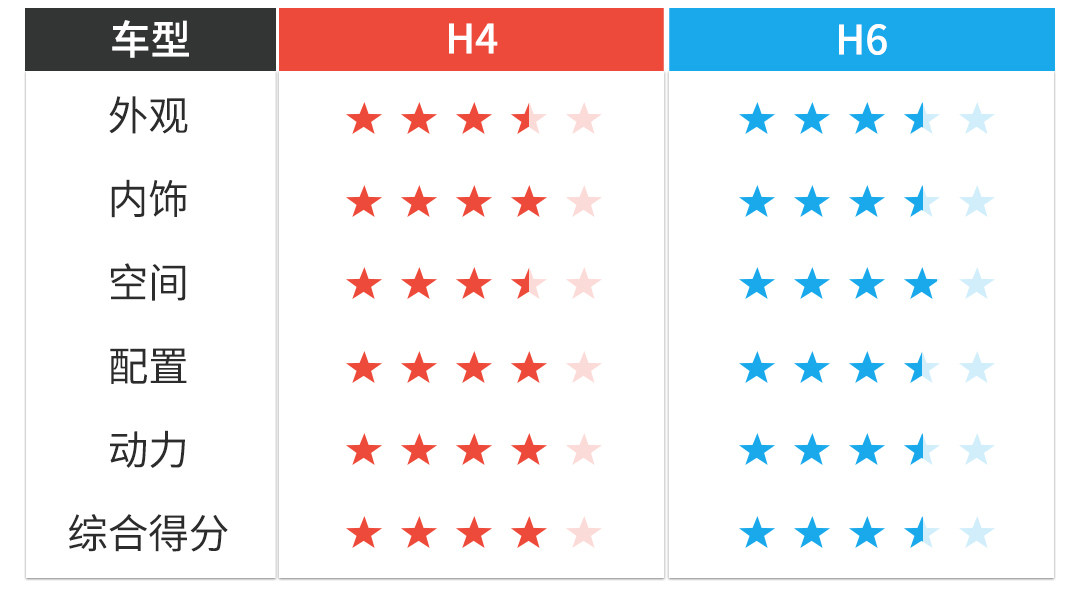 由于H4是后推出的产品,无论是配置上还是视觉效果上都比前辈H6要好,但由于车辆的定位原因,H4的尺寸不及H6,直接影响空间感,如果后排不是经常坐人,H4会更加适合日常使用。