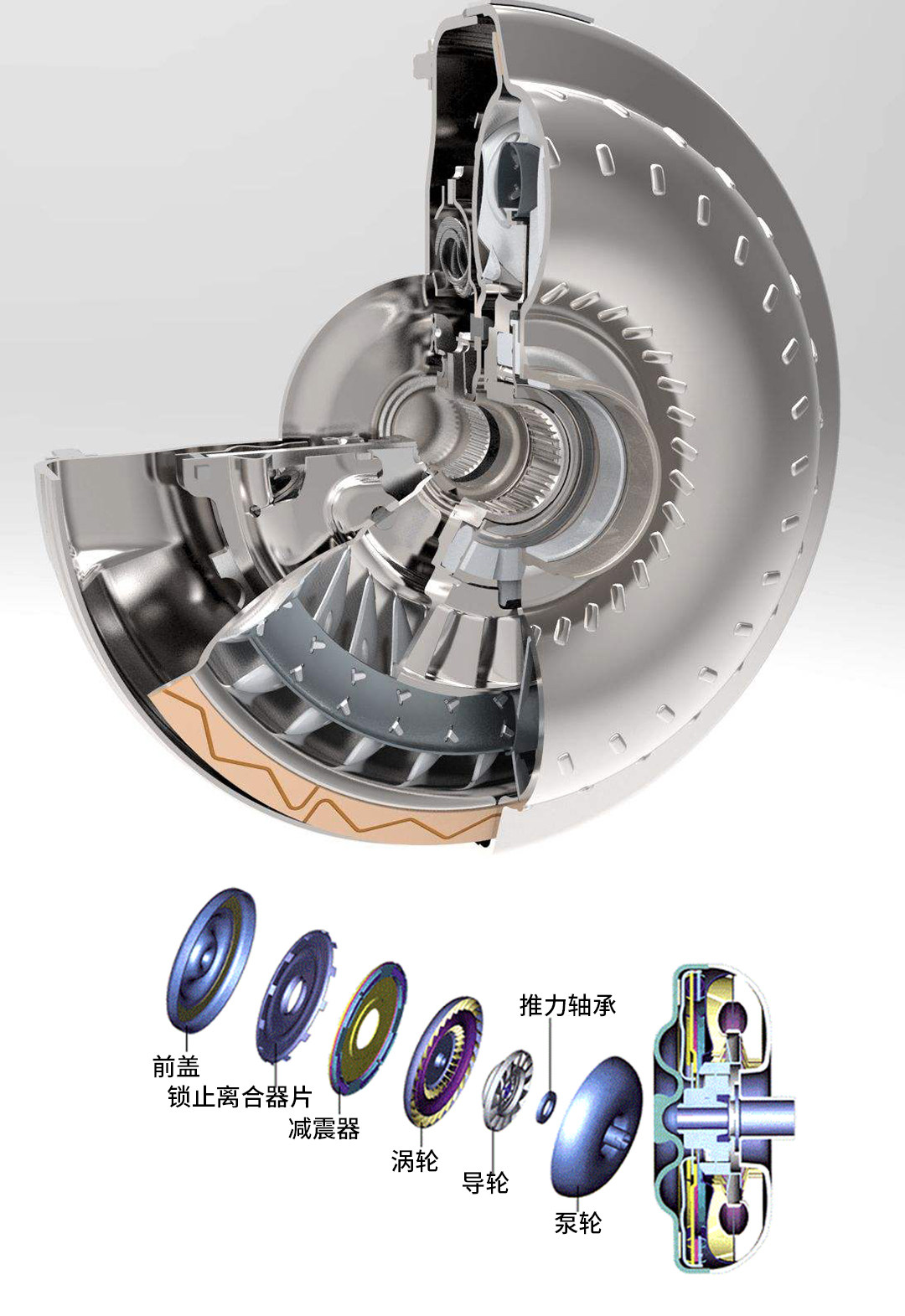 前两者都具备了最为常见的液力变矩器而后者则是采用了与手动挡相差不大的离合器实现动力传递。