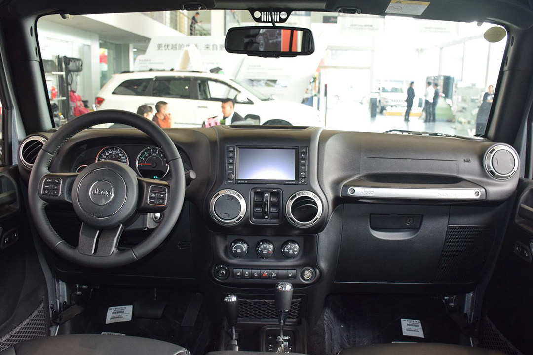 新一代牧马人对内饰进行了重点修改,虽然依然采用T字形中控台,但镀铬部件、更大的触控屏、炮筒式仪表以及颇具运动感的三辐式多功能方向盘的加入让内饰更加高档、精致。