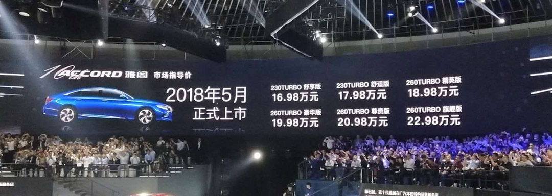 2018年开年最重磅的新品——第十代雅阁在4月16日正式公布售价,共推出六款车型,售价16.98-22.98万元,新车目前全面接受预定,5月正式上市,同时混动版将在北京车展上首秀,预计今年第三季度正式上市。