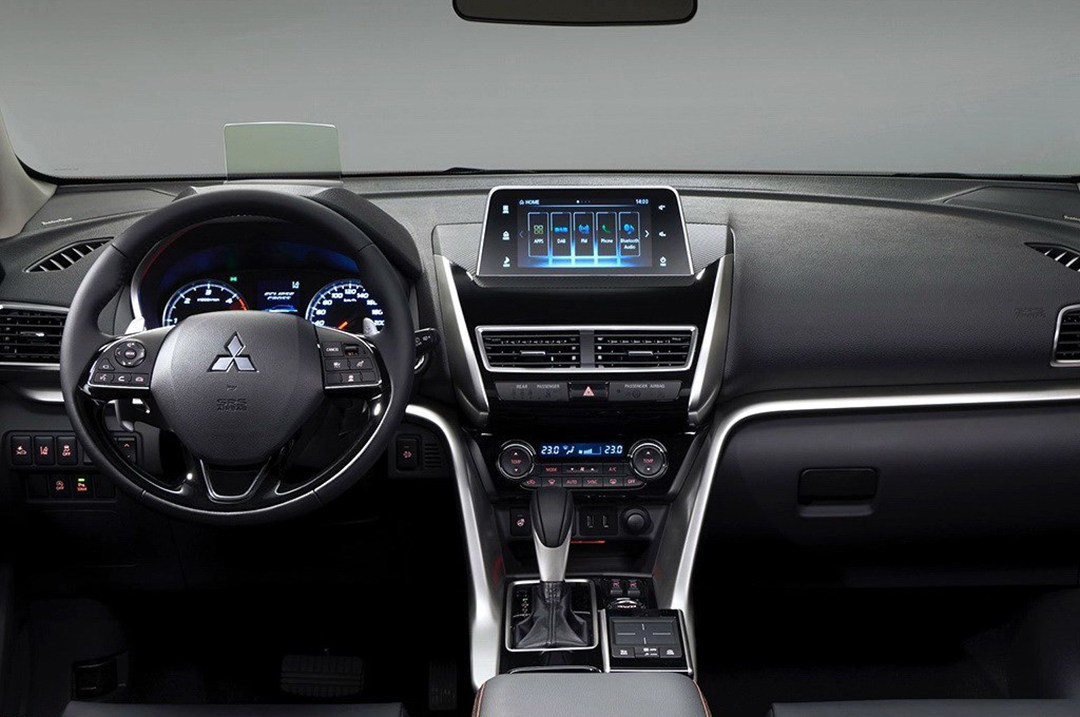 内饰使用了如今流行的悬浮式中控屏设计,还有类似奥迪MMI的多媒体控制模块,该系统还支持Apple CARPLAY。简约易用的内饰设计以及大面积换挡拨片,让人可以相当容易辨识到这是三菱车型。