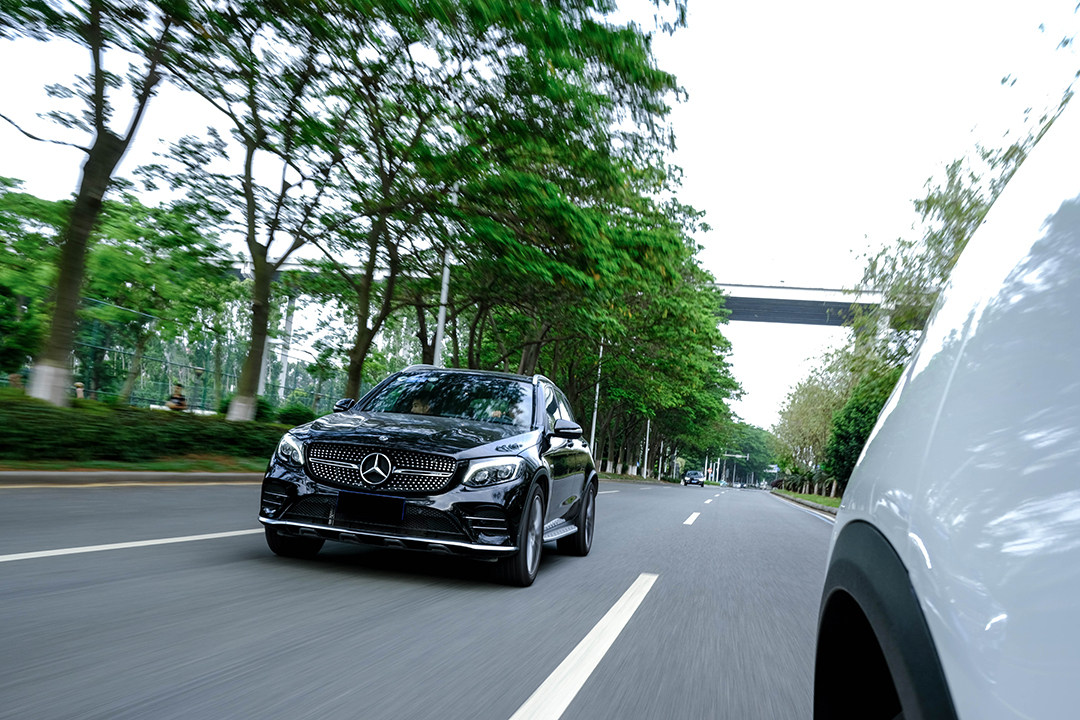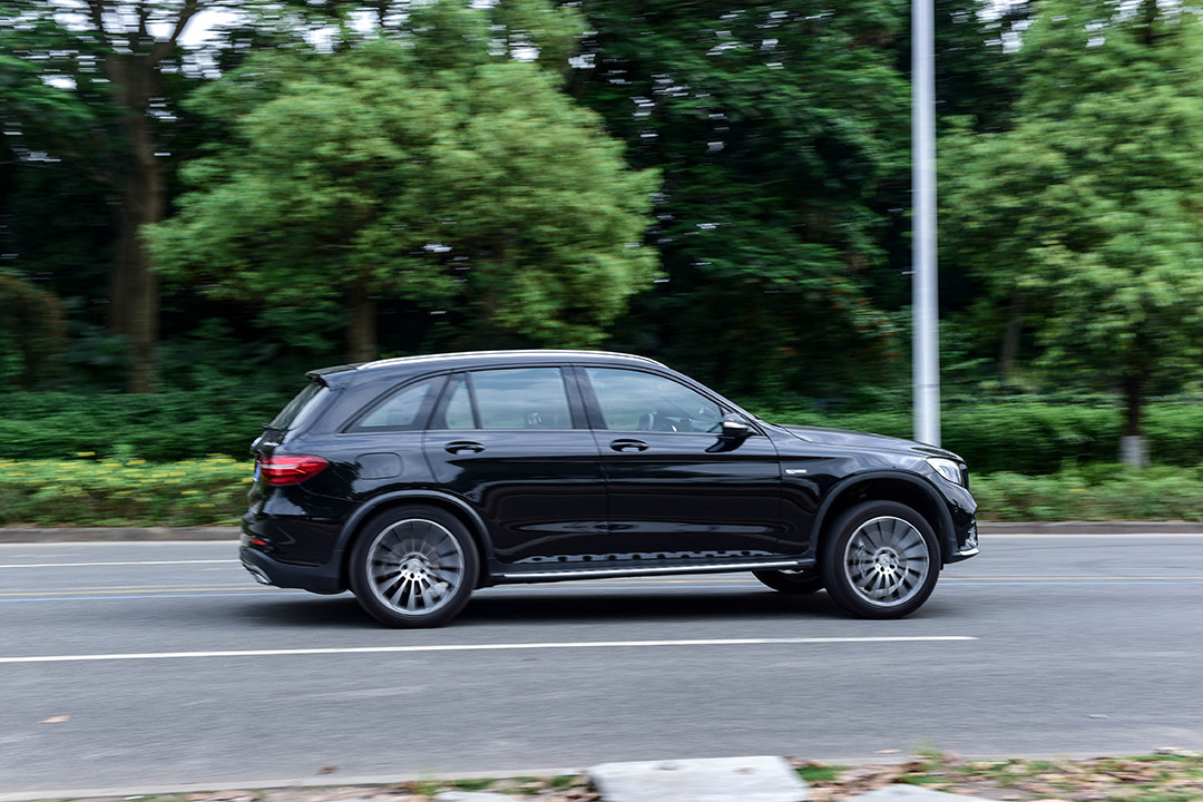 当然了,驾驶起来的时候,你也觉得它是一台SUV而不会觉得它AMG化了之后有多跑车。虽然说AMG将4Matic系统调教成前后动力按33:67的比例分配,而且全系标配了可三级手动调节硬度的气动悬挂。但即使调到最硬,SUV该有的大倾侧也会有,过弯动作也不见得有多利落。方向盘传来的路感还是很奔驰的。据说的转向节作了一些改进,拥有更多的动态倾角变化,以获得了相比普通GLC更“有趣味”的驾驶感。不过,这套四驱系统将雪地、越野等的ESP模式都砍掉了,对应多路况的能力就更弱了,算是一种道路高性能的妥协吧。值得一提的事,GLE43上的悬挂调教是和动态模式绑定的,而在GLC43上你则可以分别调节,就是你可以使用Sport Plus的悬挂设定,但不需要被迫使用跟那种神经质的油门反应,这算是一个不错的改进。