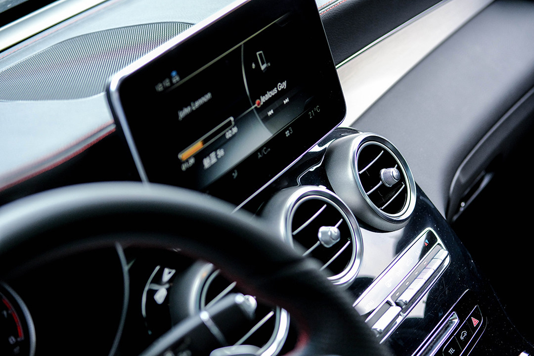 除了在开机画面有AMG的字样,你在内饰想找个AMG的字都难,至于战斗感,不存在的。如果你要有全碳纤的面板,带AMG字样的alcantara平底方向盘,麻烦加多8万选顶配的型号。不过按照43的配置,就是普通GLC的中配水准,譬如后排比较实用的双驱空调也变成了只有出风口开关。