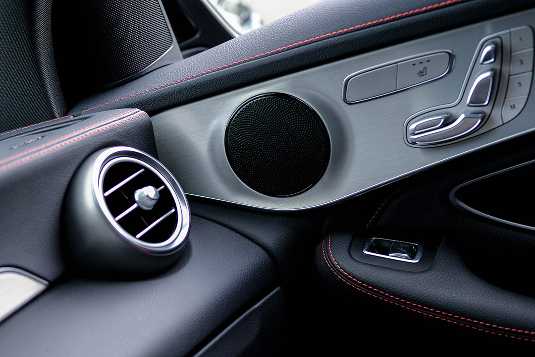 那么一说到AMG啊,就像宝马的M一样,很多人第一反应就是什么“披着羊皮的狼”。其实以AMG 63、45等高性能型号已经是披着狼皮了。通常他们有比普通版更巨大的轮圈和更薄的轮胎、更夸张的宽体和前后包围,吵死人的排气,加上标识身份的各种铭牌,外观上一看就是性能车。反观现在奔驰推出的“入门级AMG”43系列,外观和普通型号的区别并不很大。就以这台GLC43 AMG来说,换了一个满天星中网,有更宽的后轮和offset更外抛的轮圈,同时在叶子板加了一条不太引人注意的小轮眉以遮住外抛的车轮。车尾有(假的)四出排气的尾嘴,和一些AMG标识,That is it。一般远处看几乎和一台改了运动中网的GLC完全没区别,也就更不知道引擎舱里面多了两个气缸。相比于更夸张的GLC63,这台GLC43才是批了羊皮,低调低调。