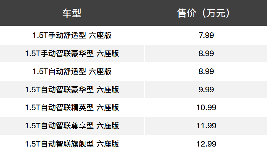 惊喜当然要留到最后,对于大家最为关心的价格问题,厂家宣布此次推出的两种动力共七款车型的六座版新车指导价为7.99万-12.99万元,同步上市的还有两款宋MAX七座版高配车型,其指导价为11.99-12.99万元。整体来看六座版与价格区间重叠的七座版各个车型的价格是对应相同的,那么到底在你心里谁会更胜一筹呢?