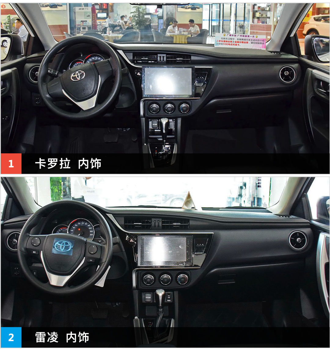 雷凌和卡罗拉均采用丰田全新的Keen Look设计风格,区别在于卡罗拉基于欧版卡罗拉打造,除了大面积镀铬装饰外,其余都继承了家用务实的风格;