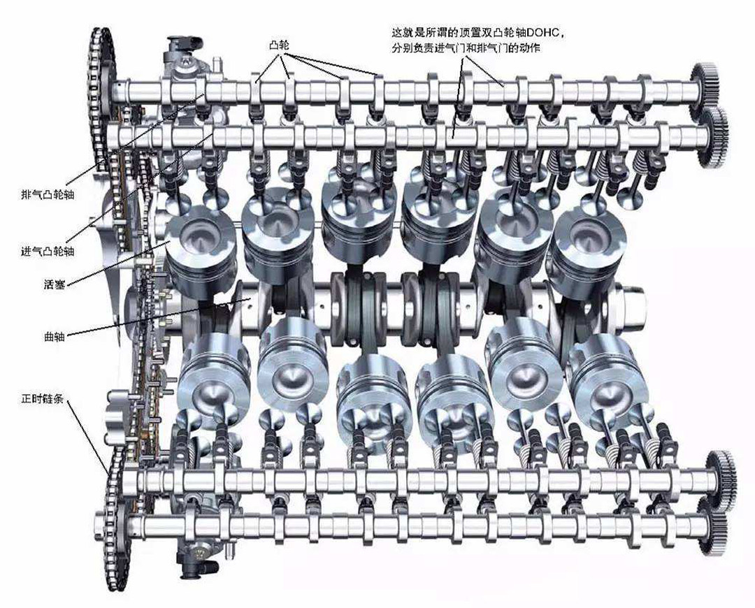 目前我国市面上绝大部分的汽车都是使用顶置凸轮轴结构,即顶置凸轮轴。顶置凸轮轴又分为单顶置凸轮轴和双顶置凸轮轴,顾名思义,单顶置凸轮轴即只有一条凸轮轴来控制进、排气门,而双顶置凸轮轴的进气门和排气门由独立的凸轮轴来控制。