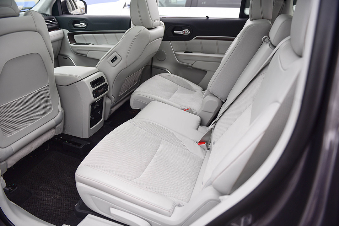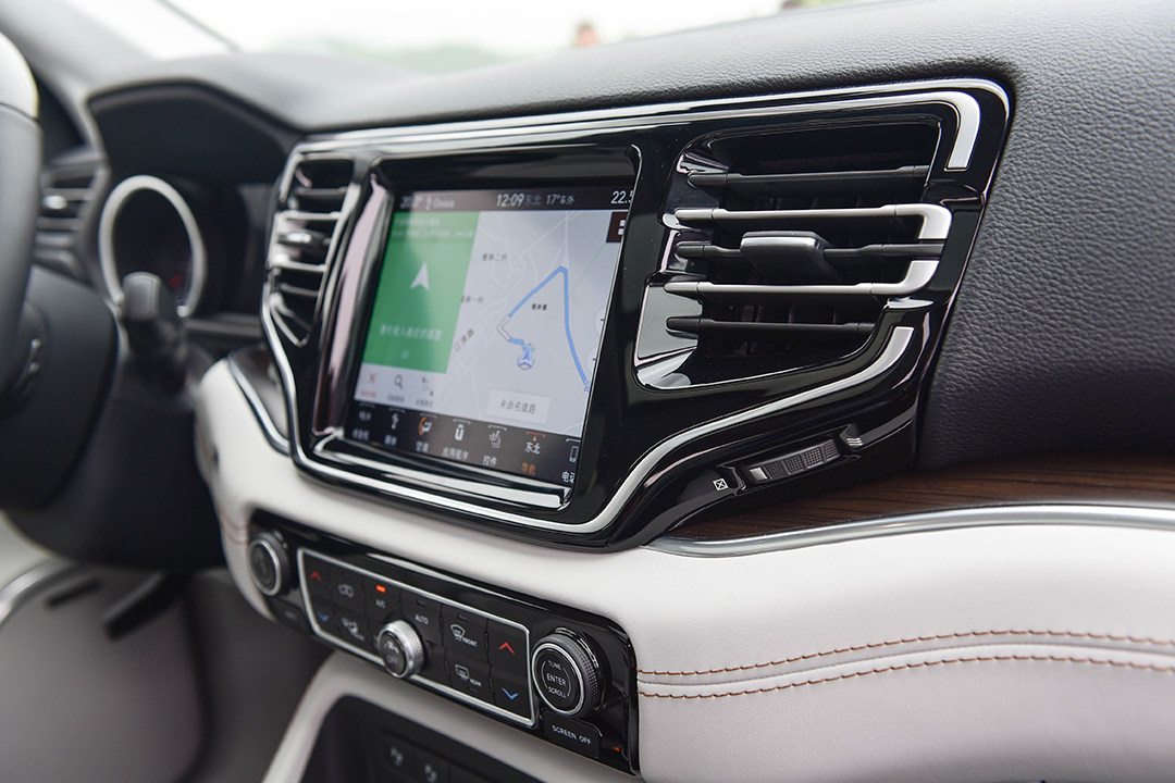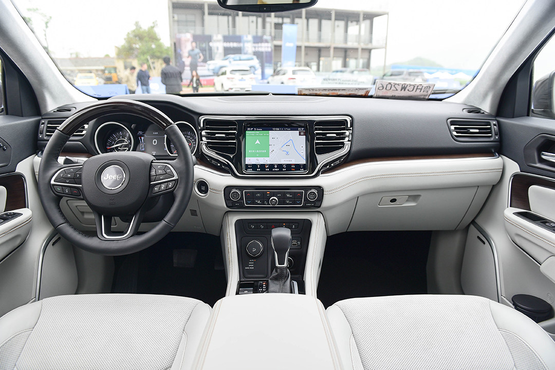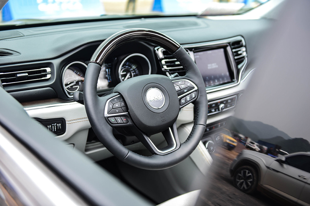 内饰上,则更加可以体现到由中国团队开发的好处,做工用料和装备的搭载,都是Jeep家族中前所未有的,留意中控细节可以看到皮质覆盖、实木饰板、镀铬饰条、钢琴烤漆、橙色双缝线等多种元素层层排列,相互组合在一块,十分讨好。在方向盘上也能看到由真皮和实木的包裹组成,时刻为驾驶员暗示着豪华的感觉。