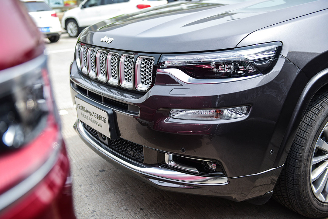 由于新车从设计到研发都是由中国团队进行,因此在外观设计上,不乏许多符合国人口味的小细节,新车前脸是整车外观较为精彩的部分,使用了Jeep家族式的七孔式进气格栅,搭配了哑光金属和钢琴烤漆双色饰板,且前大灯和保险杠下方都用上了哑光镀铬进行包装,在保留了家族元素外,营造出了精致豪华的质感。