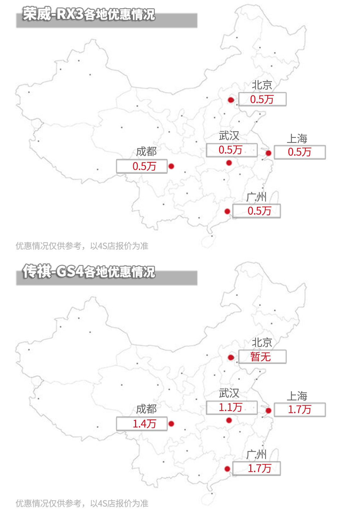 荣威RX3与传祺GS4虽然同样定位在紧凑型SUV之上,但是在整体售价上RX3的入门售价也比GS4低上1万。在优惠幅度上,由于GS4上市时间更长而且即将迎来换代车型,所以目前也有着一个很不错的优惠方案;对于RX3而言,目前大概也有3000-5000左右的优惠幅度。