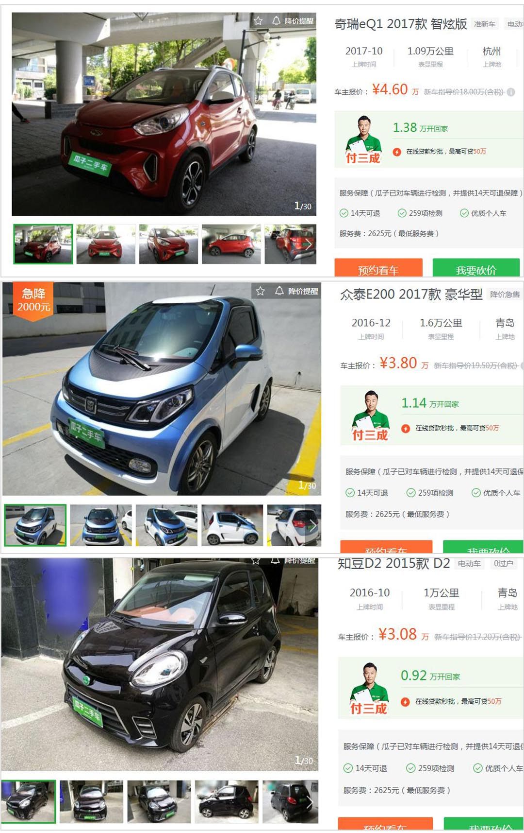 都说电池的寿命不长,不过不用担心,国家对新能源电池质保都是有要求的,奇瑞eQ1跟众泰E200都是五年或10万公里质保。知豆D2则是八年或12万公里,所以不用担心电池的问题。电池有了保障,二手车的保值率也还不错,看图这些车贬值都不是很大。