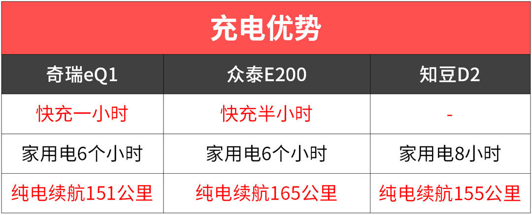 新能源汽车充电是个问题,充电桩不是哪里都有的,这三辆车家用220V电源也可以充电,而且是只需6个多小时就可以充满,晚上睡一觉,第二天起来又是满满的续航里程,又可以开出去嗨了。众泰E200在充电及续航里程上有明显的优势。